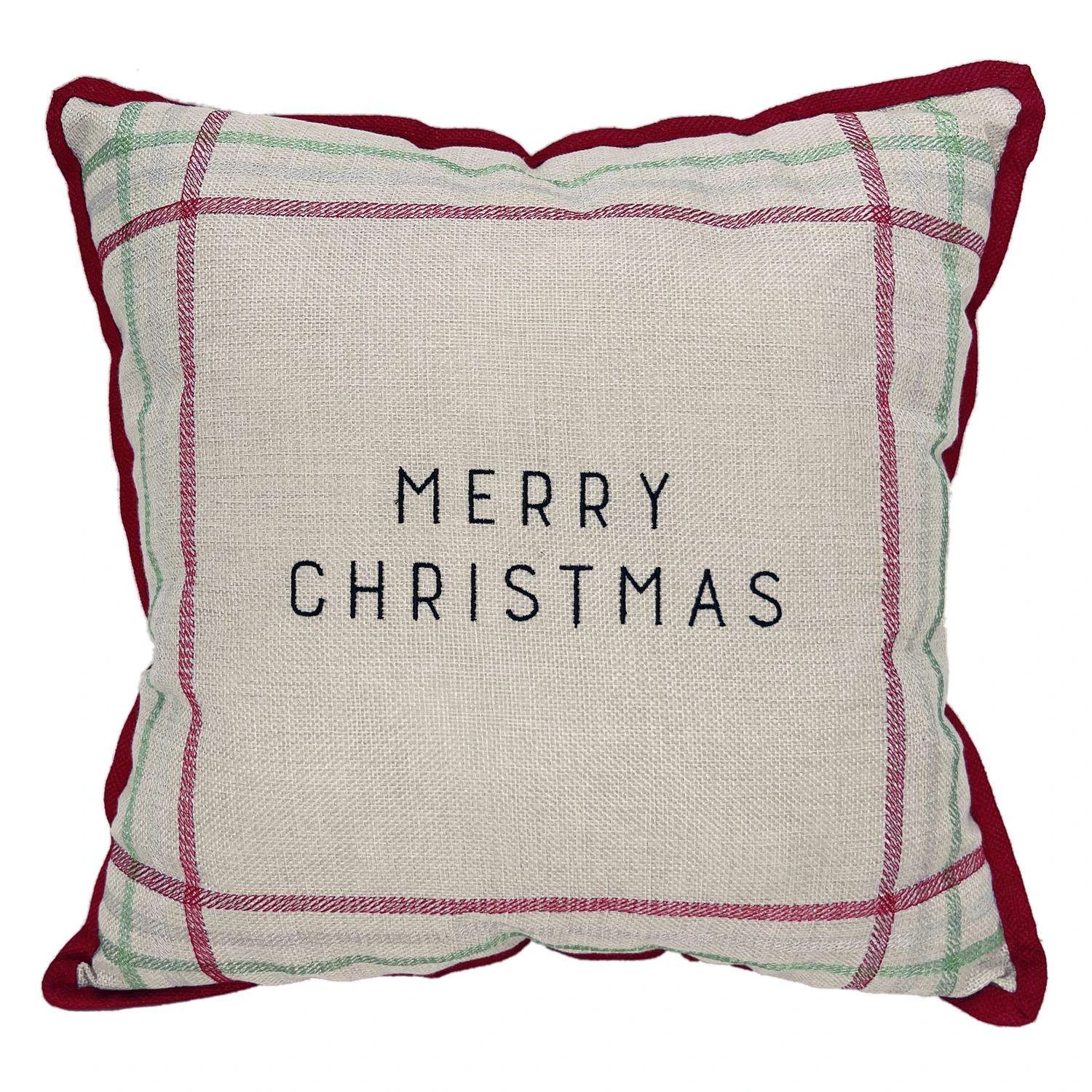 Celebrations Home Multicolored Winter Woodland Striped Merry Christmas Pillow 5 In.